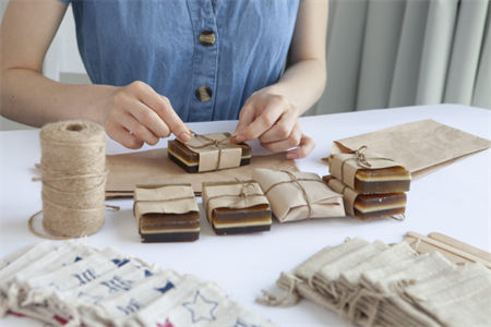 箱入りの商品なら袋がなくても大丈夫。リボンや紐を一周巻いてシールで留めるだけで、簡易ラッピングとは思えないほどきれいにまとまります。柔らかいもの(靴下・ハンカチ・小物など)はジップ袋に入れて空気を軽く抜くと形が整い、さらに紙の帯を巻くだけで“ギフト感”が出ます。小さな雑貨なら、ハンカチで包んで結ぶ“風呂敷風ラッピング”も可愛く仕上がる方法です。